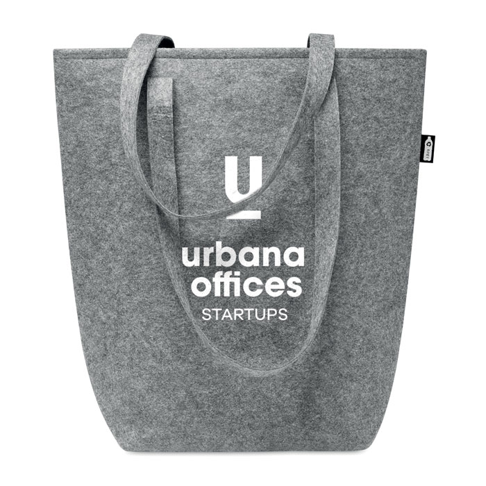 Plstěná nákupní taška z RPETu s dlouhými držadly a složeným dnem.
