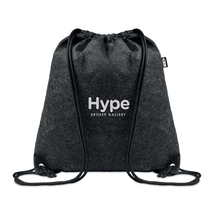 Plstěný RPET stahovací batoh s polyesterovými šňůrkami.