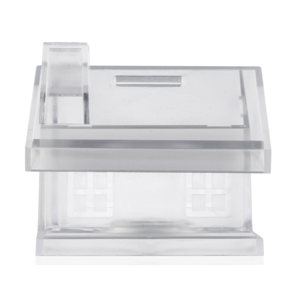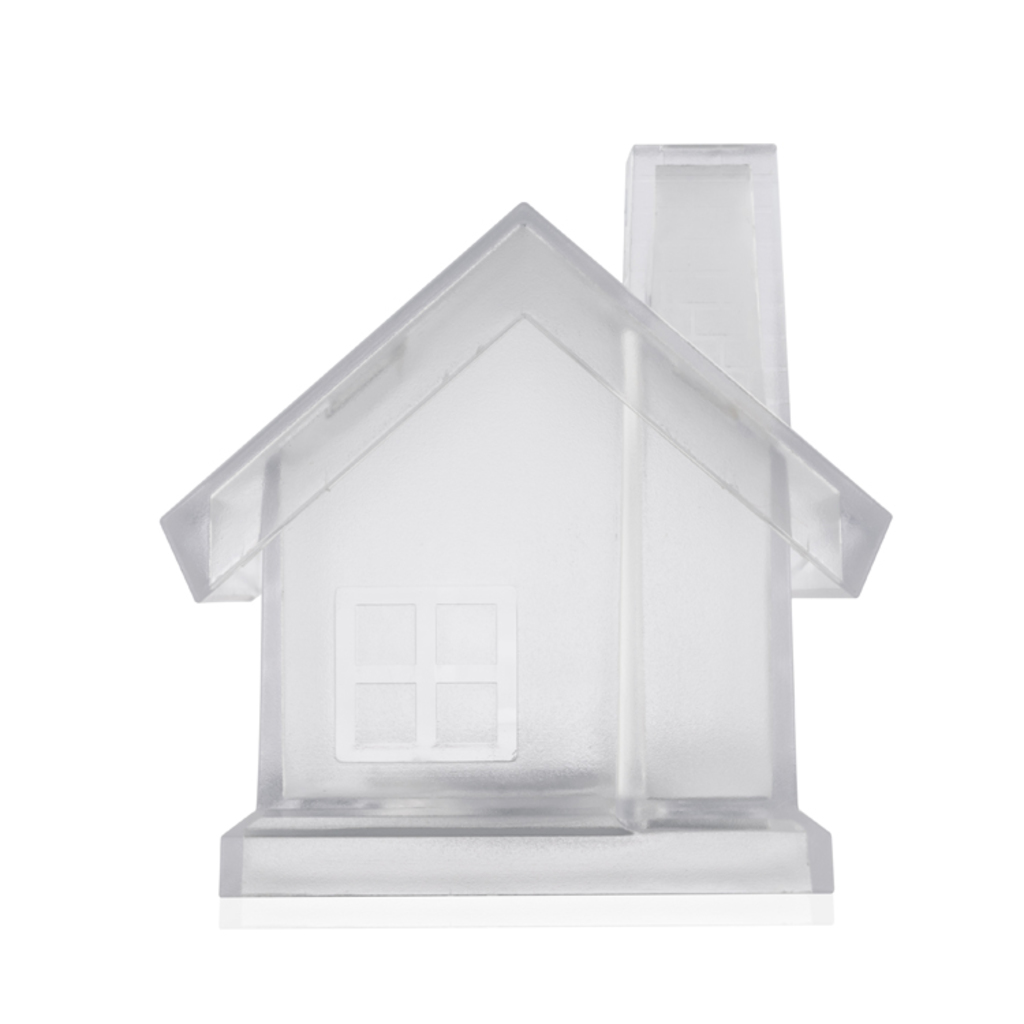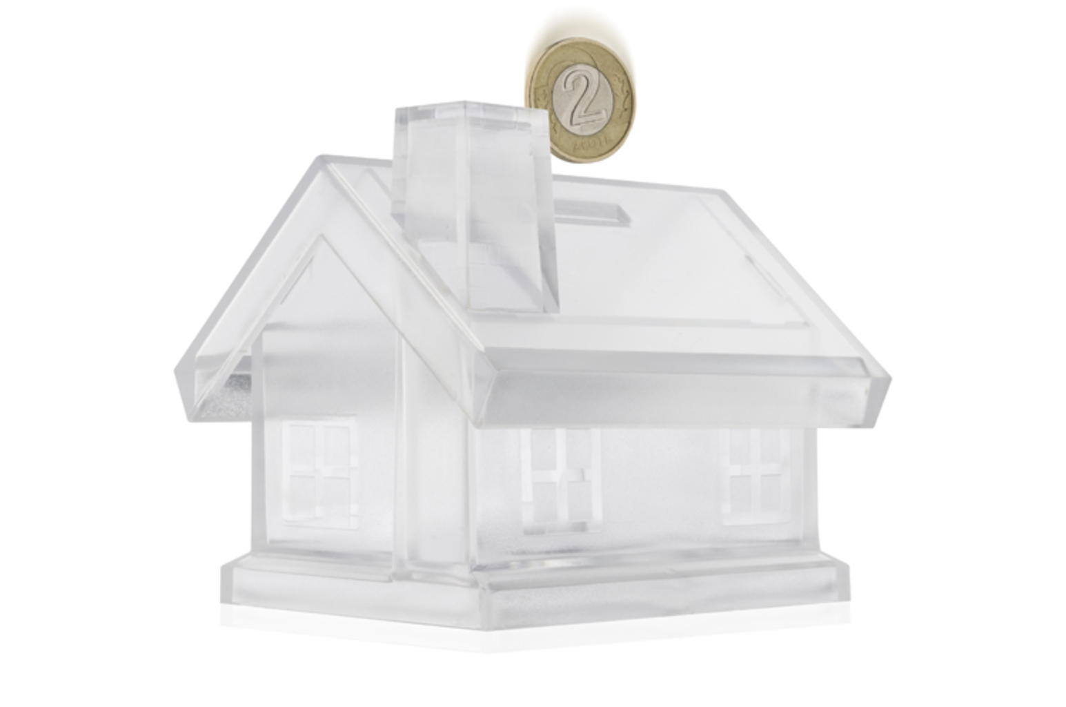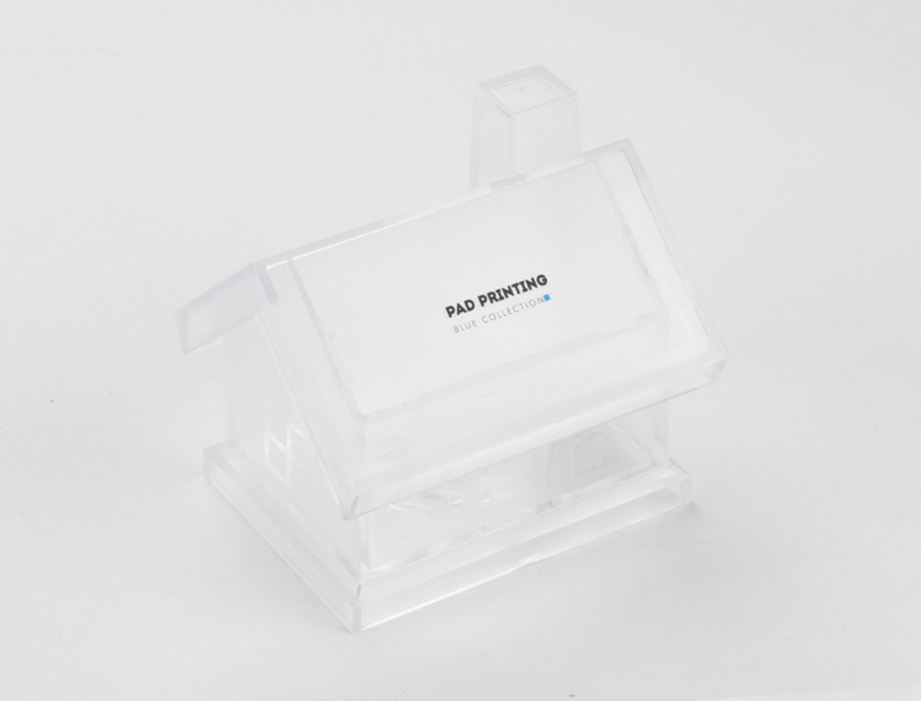 Peněženka ve tvaru domu vyrobená z poloprůhledného materiálu. Na dně je uzamykatelné otevření umožňující vybrat úspory. Logo lze tisknout pomocí techniky tisku na podušku.