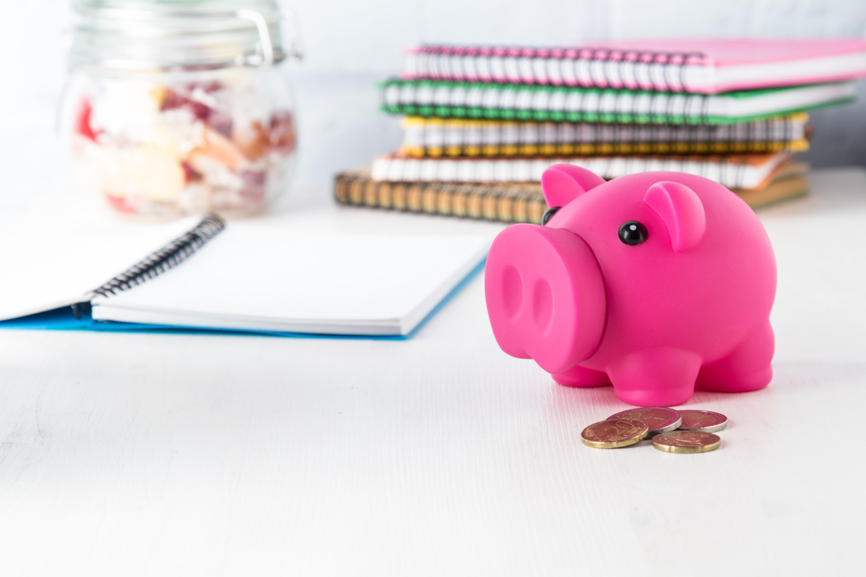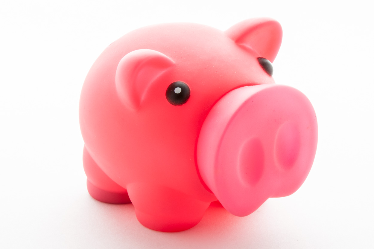 Plastová pokladnička prasátko, s oddělitelným rypáčkem pro otevření.