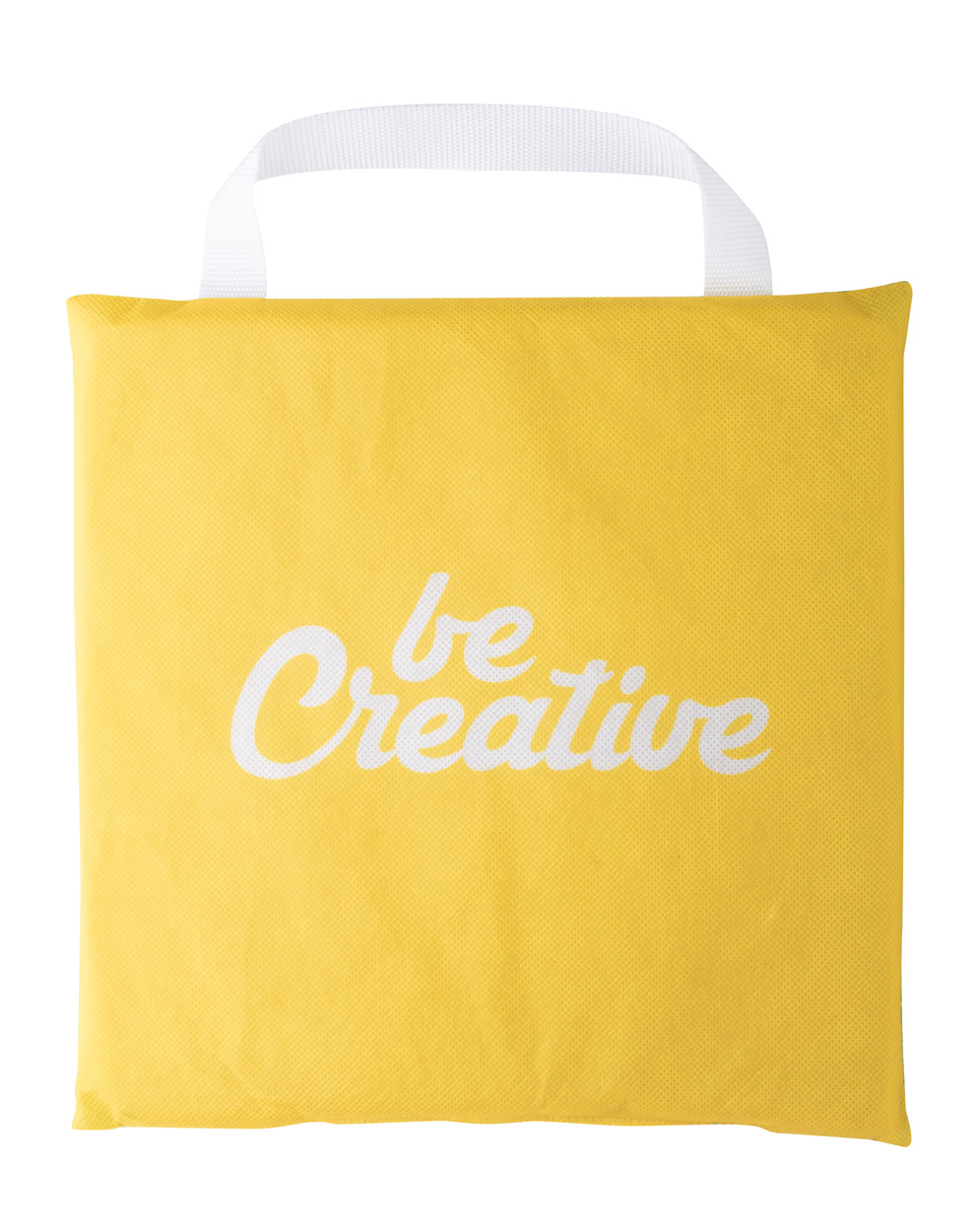 Na zakázku vyrobený polštář na sezení z netkané textilie s uchem. Cena zhahrnuje celoplošný sublimační tisk, nezahrnuje tiskovou přípravu. Min. mn.: 50 ks.
