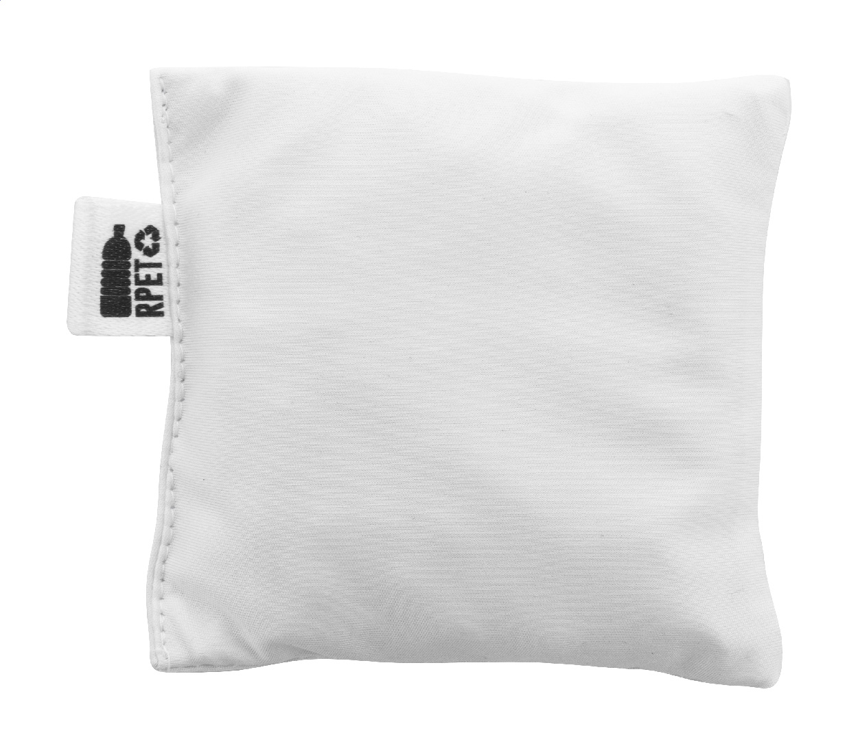 Na zakázku vyrobený termo polštářek s výplní z třešňových pecek potažený mikrovláknem RPET. V kompaktní velikosti určené pro použití na uších. S celoplošným potiskem sublimační grafiky a výrazným štítkem RPET. Cena nezahrnuje tiskovou přípravu. Min. mn.: 50 ks.
