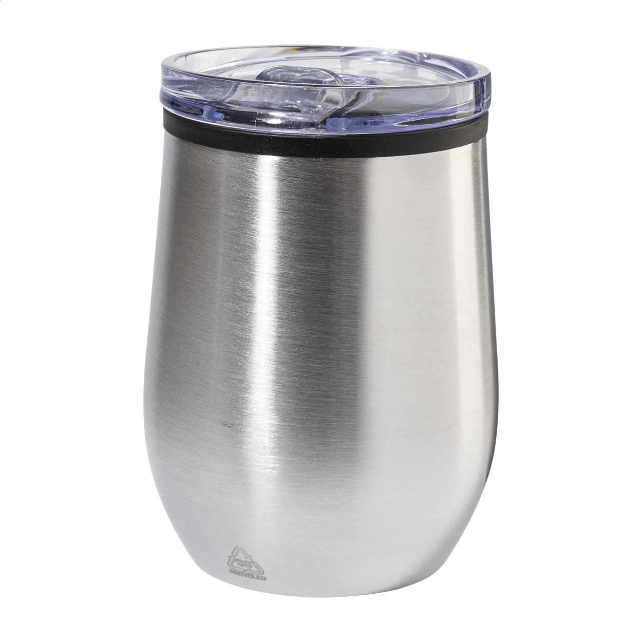 Dvoustěnný termo hrnek z recyklované nerezové oceli s vnitřní stranou z PP a víčkem z PS. 350 ml.