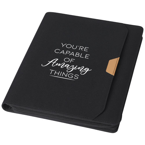 Portfolio s certifikací RCS Nomumi je částečně vyrobeno z recyklovaného spotřebitelského polyesteru, díky čemuž je toto portfolio udržitelnější volbou, protože pomáhá snižovat použití původních surovin. Zapínání na zip, poutko na pero, harmoniková kapsa a 20 bíle lemovaných listů s recyklovaným papírem o hmotnosti 70 g/m2 z udržitelných zdrojů. Pero a další příslušenství zobrazené na fotografiích nejsou součástí této položky.