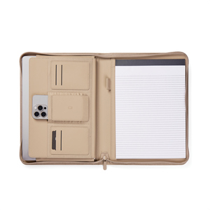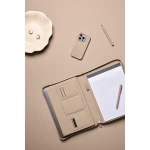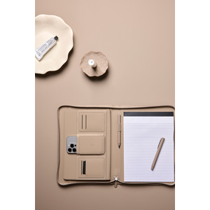 Elegantní portfolio velikosti A4 je vybaveno držákem na pero, kapsou na papír, kapsami na karty, telefon a poznámkovým blokem s 20 linkovanými stránkami. Toto portfolio je vyrobeno z částečně recyklovaného polyesteru s klasickým matným PU povrchem Baltimore a je ideálním doplňkem na váš pracovní stůl nebo na cesty. Papírová vložka je vyměnitelná. Certifikace RCS zaručuje, že celý dodavatelský řetězec recyklovaných materiálů je certifikován. Celkový obsah recyklovaných materiálů se odvíjí od celkové hmotnosti výrobku. Tento výrobek obsahuje 6 % recyklovaného polyesteru s certifikací RCS.