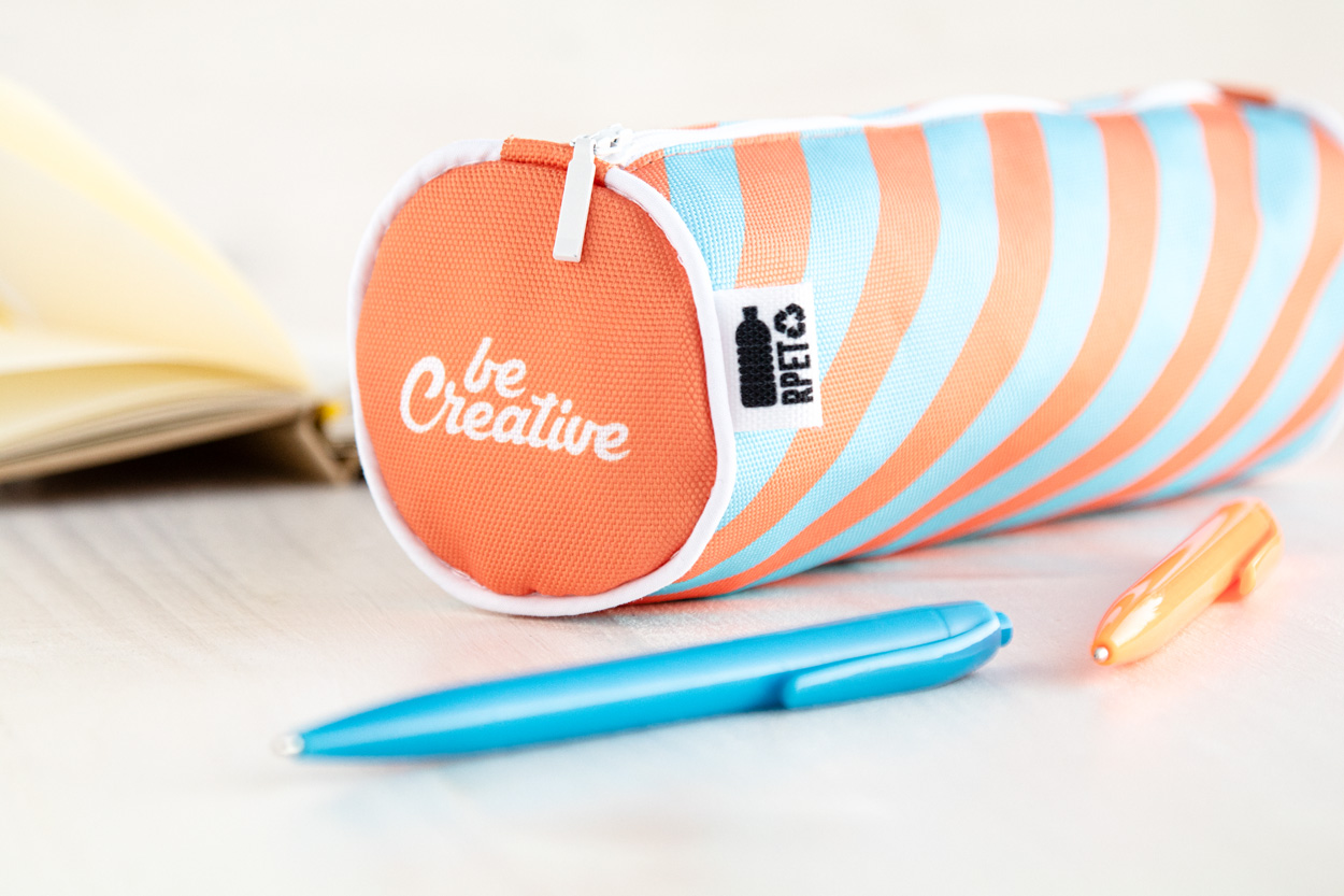 Na zakázku vyrobené pouzdro na pera kulatého tvaru na zip z polyesteru 600D RPET. S celoplošně tištěnou sublimační grafikou a výrazným štítkem RPET, cena nezahrnuje tiskovou přípravu. Min. mn.: 50 ks.