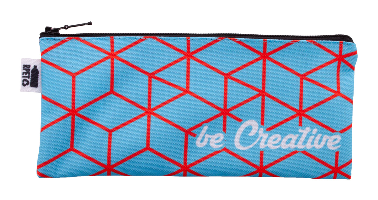 Na zakázku vyrobené pouzdro na pera na zip z 600D RPET polyesteru. S celoplošně tištěnou sublimační grafikou a výrazným štítkem RPET, cena nezahrnuje tiskovou přípravu. Min. mn.: 50 ks.