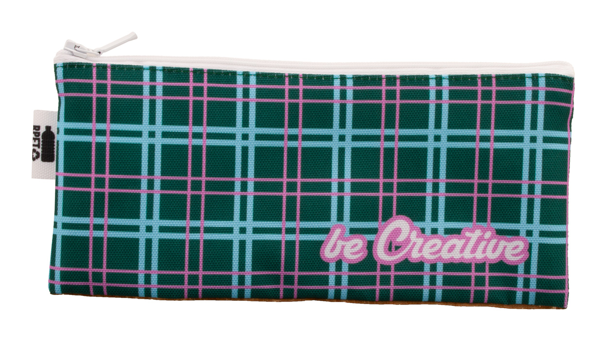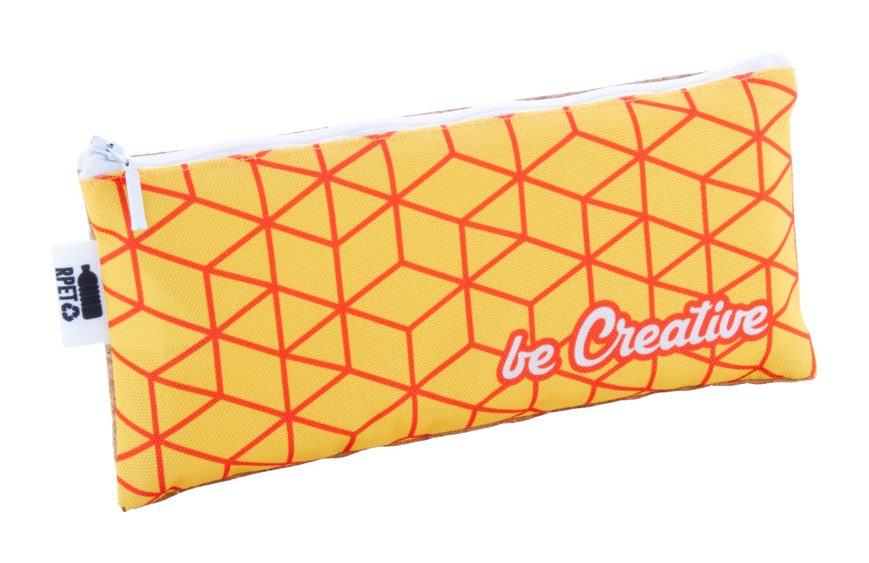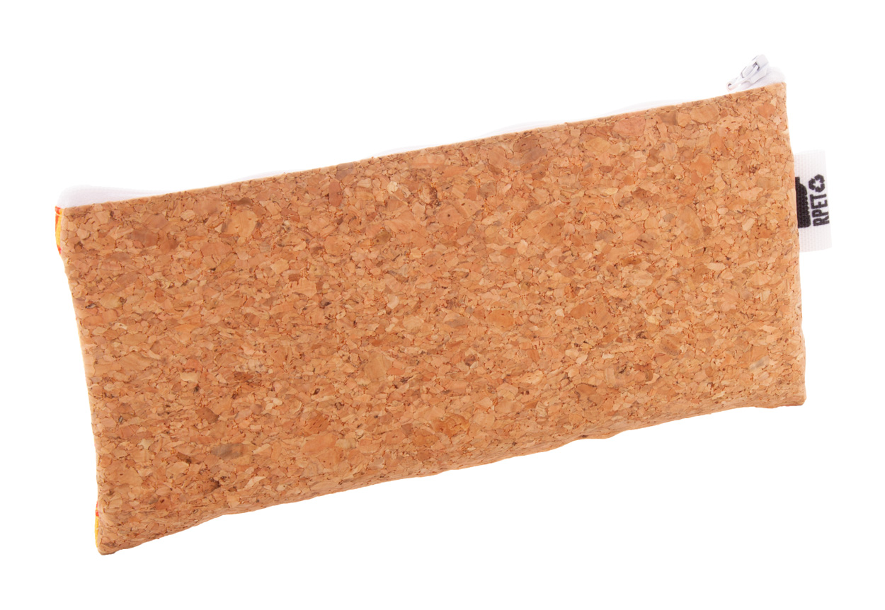 Na zakázku vyrobené pouzdro na pera na zip z 600D RPET polyesteru s přírodním korkem. S celoplošně tištěnou sublimační grafikou a výrazným štítkem RPET, cena nezahrnuje tiskovou přípravu. Min. mn.: 50 ks.
