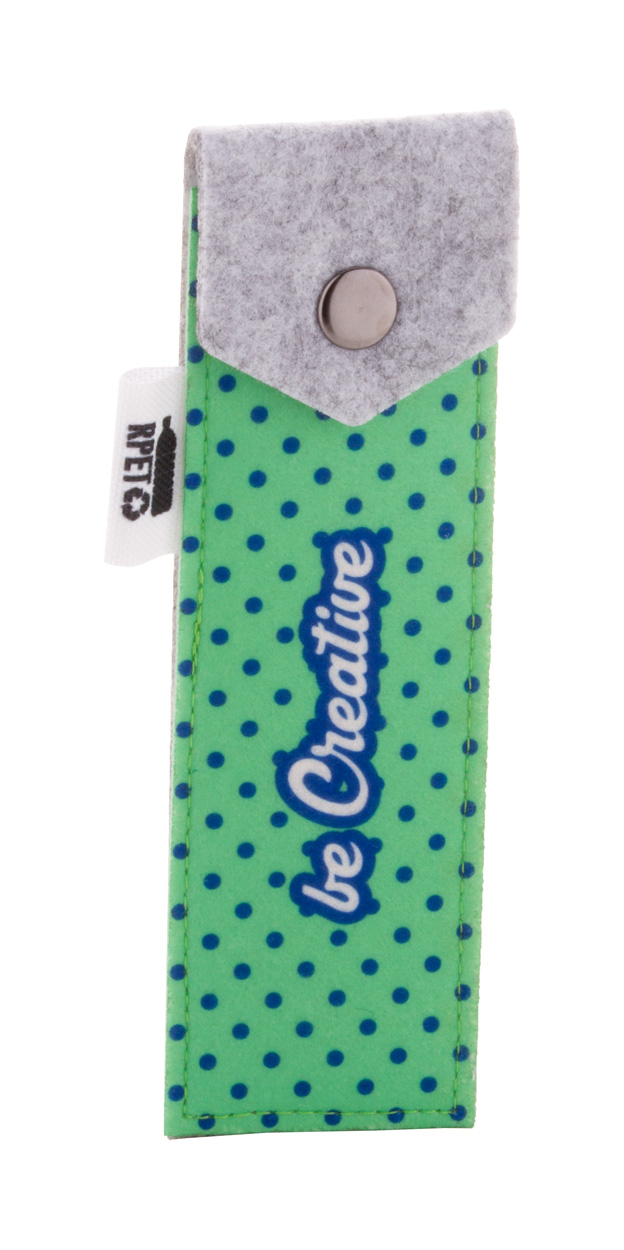 Na zakázku vyrobené RPET pouzdro na pera s plnobarevně potištěnou přední stranou, se zapínáním na druky. S výrazným štítkem RPET. Cena včetně sublimačního tisku, nezahrnuje tiskovou přípravu. Min. mn.: 50 ks.