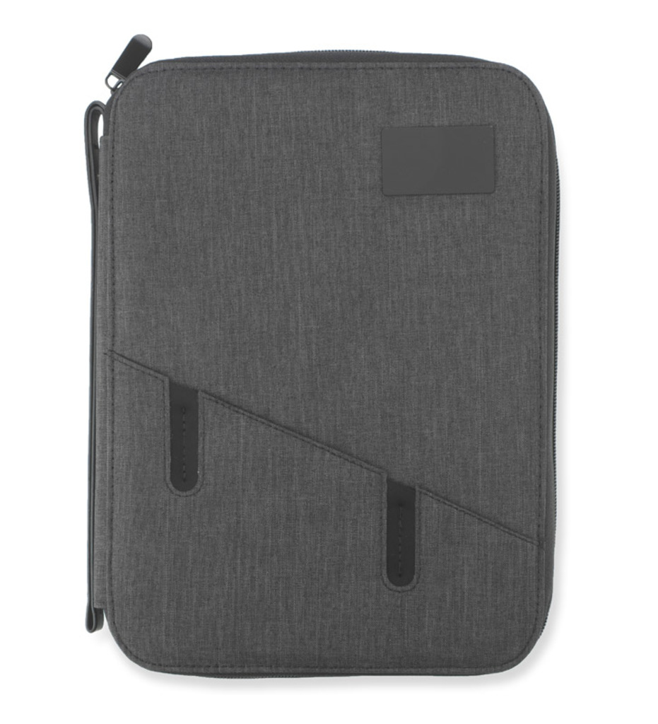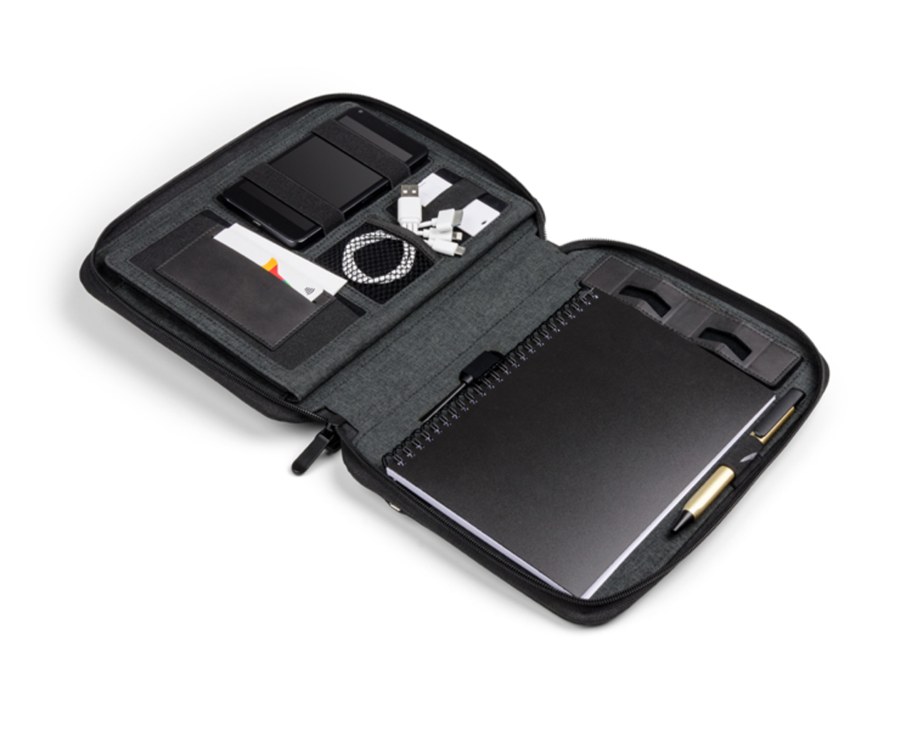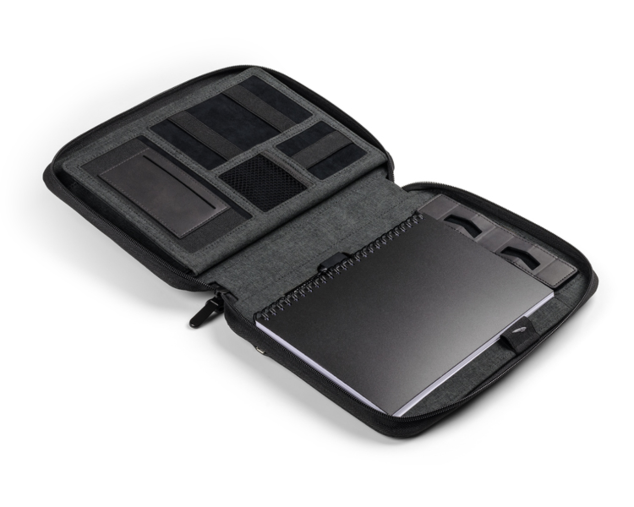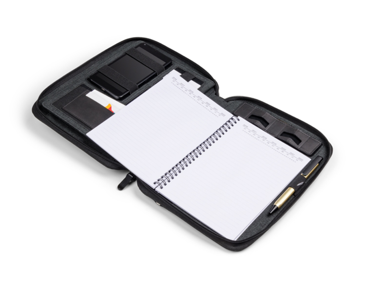 Moderní a funkční zipová pouzdro na tablet. Na přední straně má tři kapsy pro uložení často používaných předmětů: telefonu, pera a vizitek. Uvnitř jsou mnohé přihrádky, kapsy a držáky pro zajištění vynikající organizace, navíc je zde i A5 linkovaný sešit. Když umístíte tablet do speciální kapsy, můžete si být jisti, že bude dostatečně chráně
