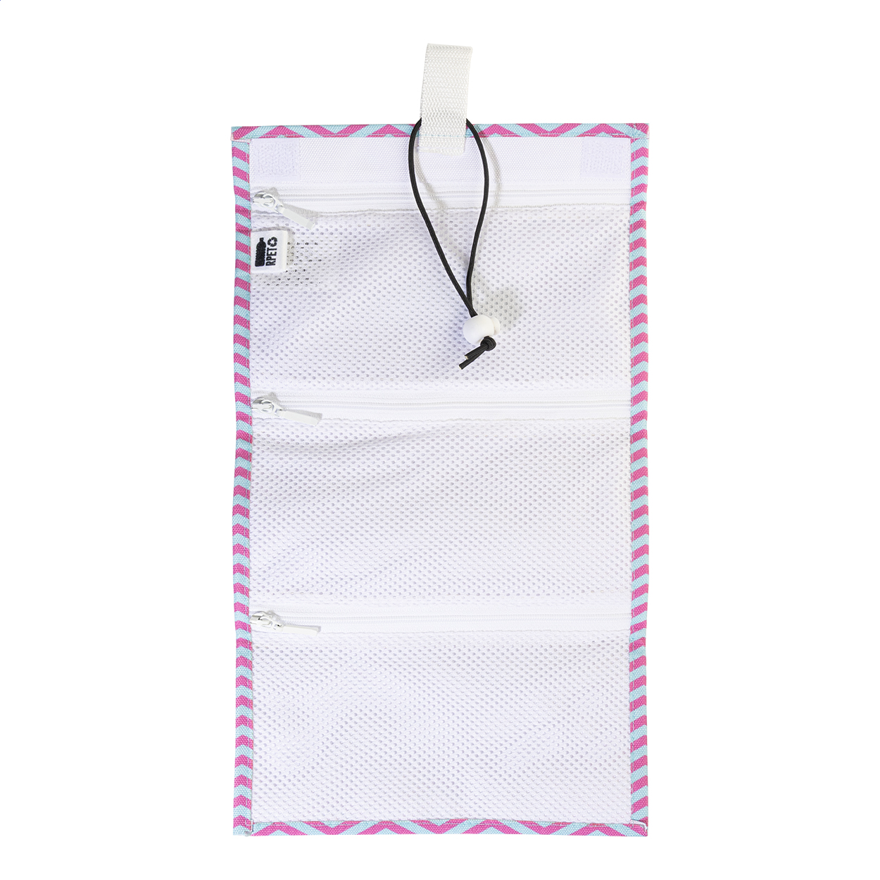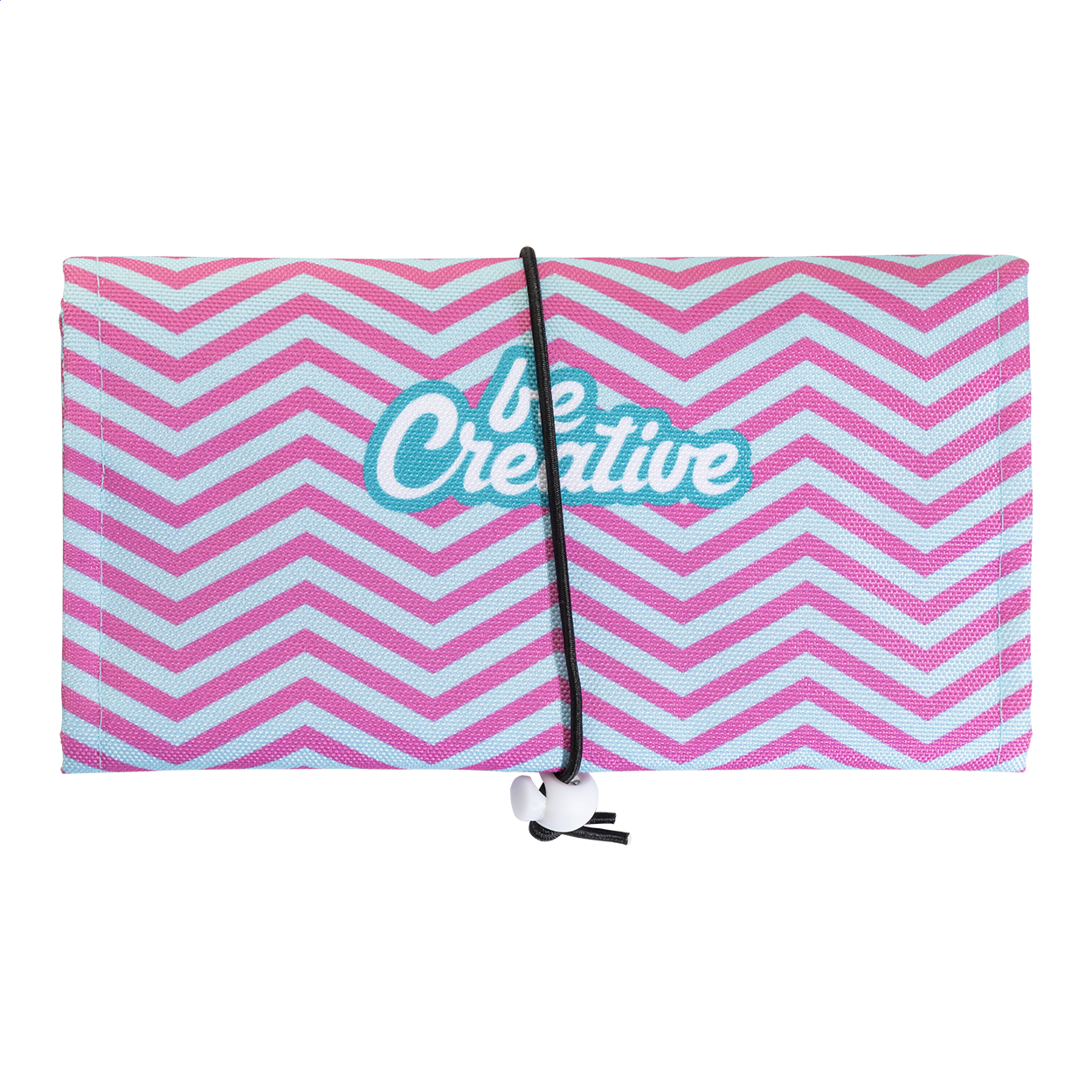 Rolovací brašna na kabely na zakázku z RPET s 3 síťovanými kapsami na zip a elastickým zapínáním. S celoplošným sublimačním potiskem. 600D RPET polyester s výrazným RPET štítkem. Cena nezahrnuje tiskovou přípravu. Min. mn.: 25 ks.