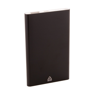 USB power banka v pouzdře z recyklovaného hliníku s 4000 mAh baterií. S 1 portem USB a 1 portem USB-C pro nabíječku. Vstupní port USB-C. Včetně USB nabíjecího kabelu.