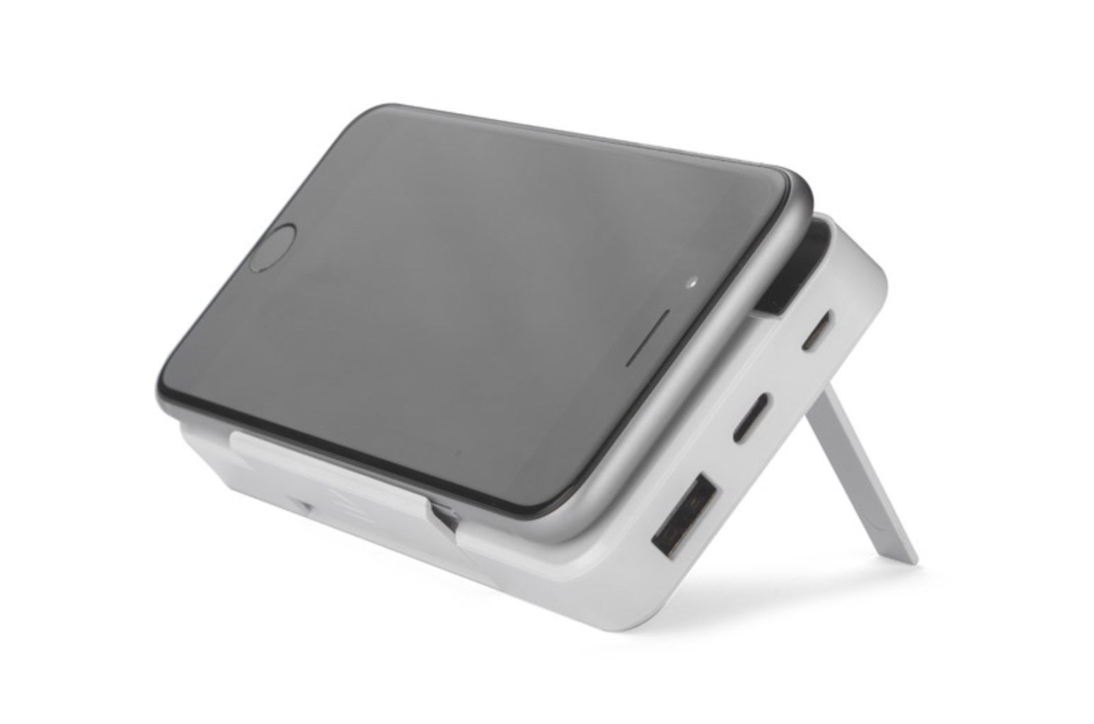 Powerbank STAND vyznačuje se velmi praktickou funkcí telefonního stojanu. Kromě toho má vestavěnou 5W bezdrátovou nabíječku. S oběma těmito funkcemi můžete sledovat film na telefonu při nabíjení baterie bez kabelů! Powerbanka je také vybavena digitálním displejem, který zobrazuje aktuální stav baterie a typ nabíjení. Součástí balení je standardní nabíjecí kabel micro USB. Produkt vyhovuje příslušným směrnicím EU, má značku CE a má 1letou záruku. Specifikace: vstup (micro USB a USB typu C) 5V / 2A, výstup USB 5V / 2,1A (max.), Lithium-polymerová baterie