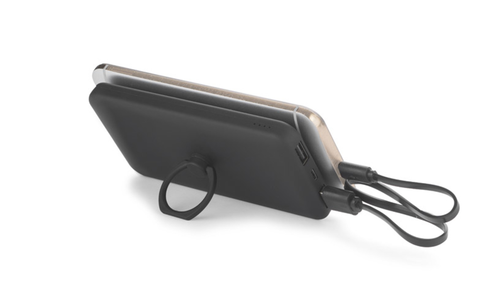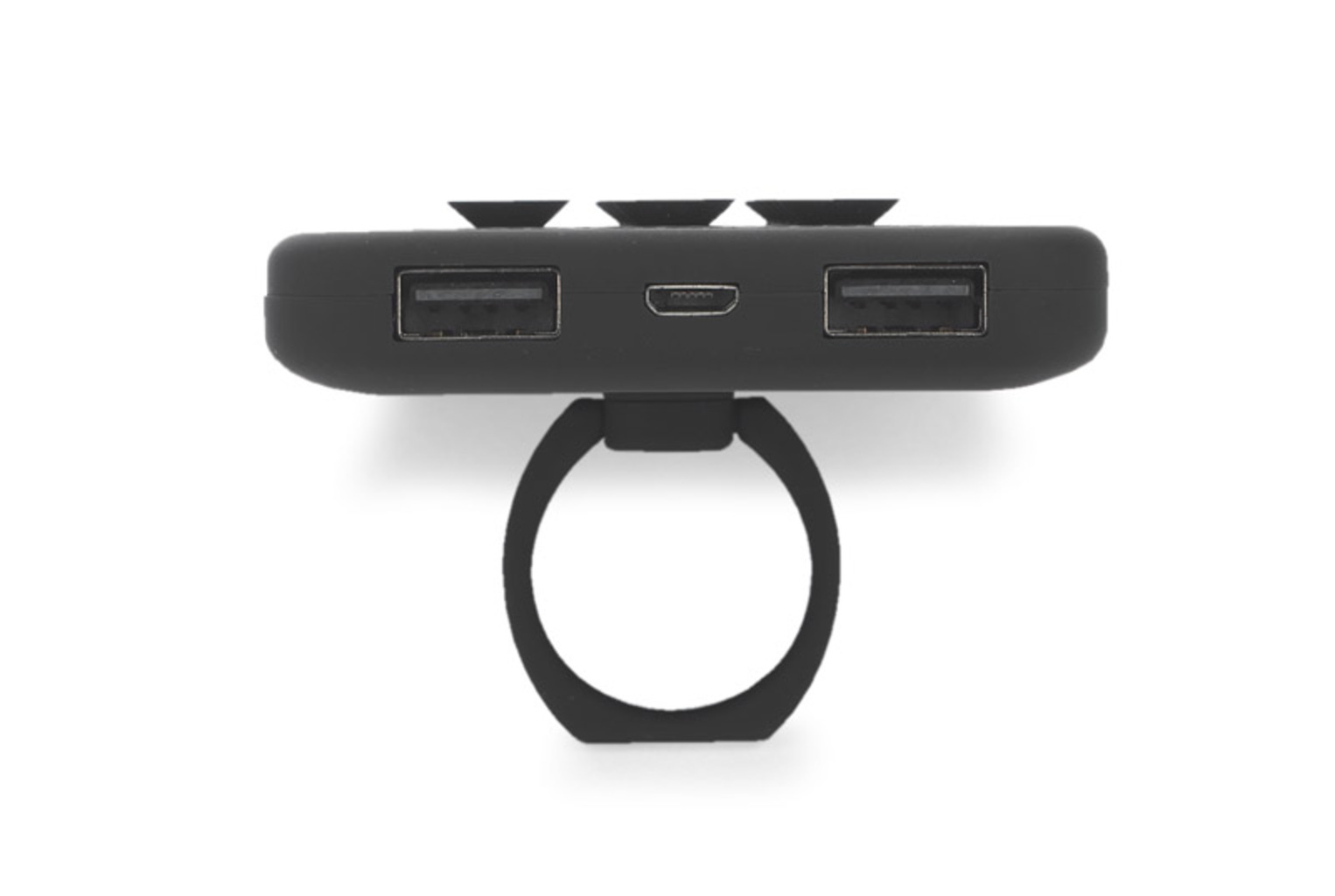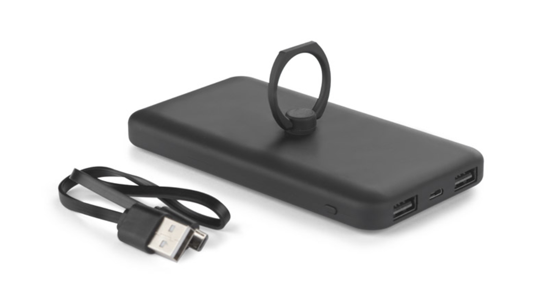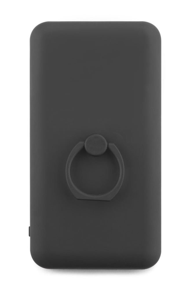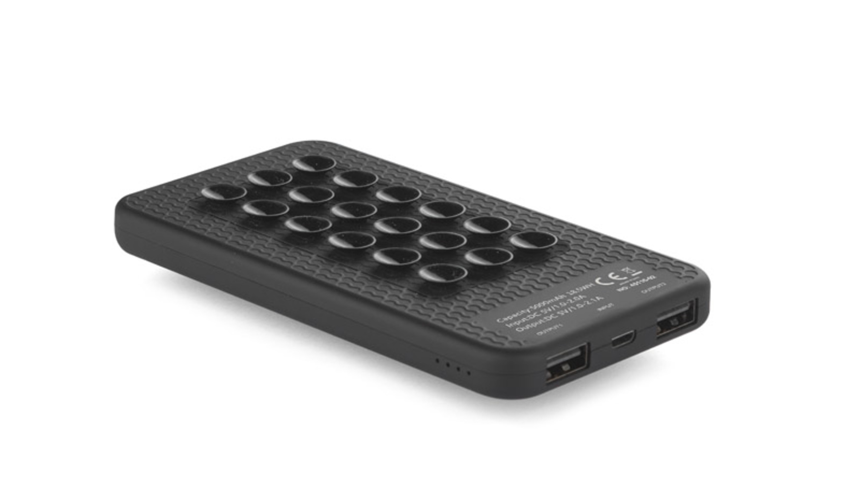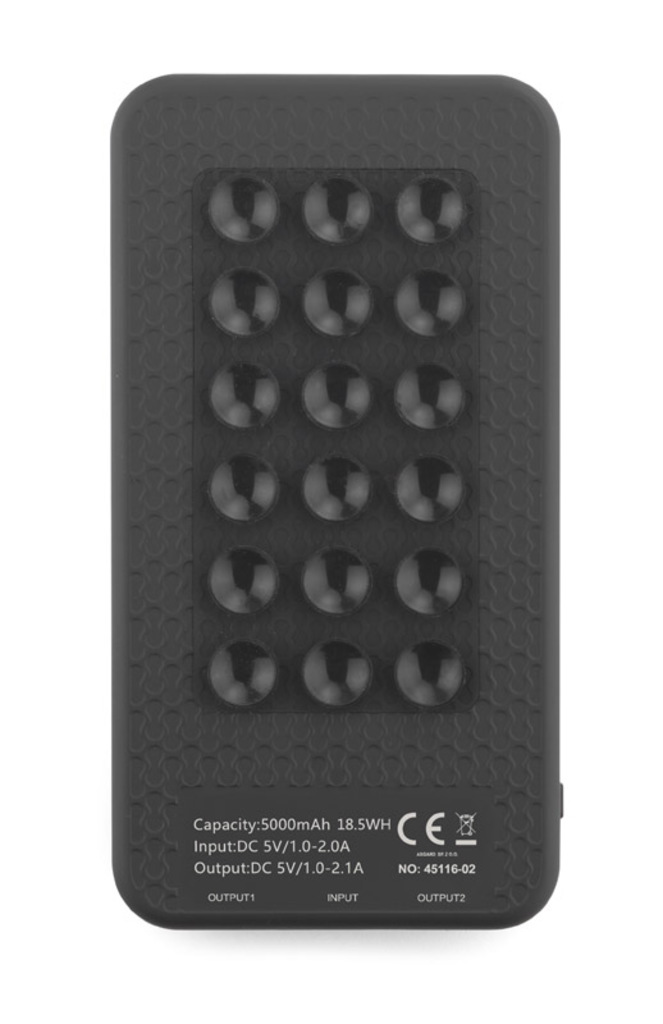 Power bank TENIR s kapacitou 5000 mAh s gumovaným povlakem vybavená velmi praktickými funkcemi. Má přísavky na telefon a poutko na prst pro komfortní držení. Je ideální power bankou pro každodenní použití, která umožňuje pohodlně používat telefon během nabíjení. Má ještě další zajímavost: po vytvoření bude vaše logo bílé podsvětleno! Sada obsahuje standardní nabíjecí kabel s konektorem micro USB. Výrobek je v souladu s použitelnými ustanoveními příslušných směrnic Evropské Unie, je opatřen značkou CE a je na něj poskytnutá roční (1 rok) záruka. Technické údaje: vstup 5V/2A, výstup 5V/2.1A, lithium-polymerové akumulátorové články.