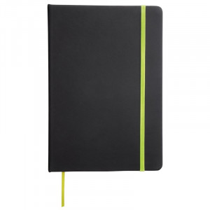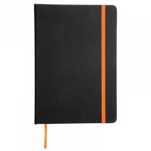 Poznámkový blok ve formátu DIN A5 se zaoblenými rohy: barevná gumička na zavření a barevné okraje stránek, integrovaná záložka, 80 listů, prázdný, 70 g/m²