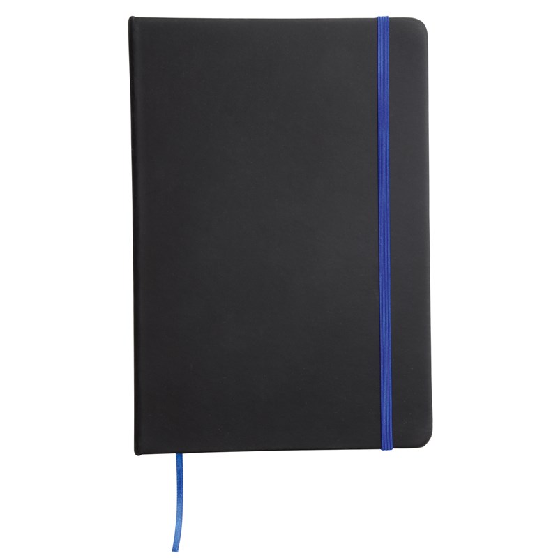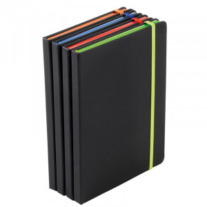 Poznámkový blok ve formátu DIN A5 se zaoblenými rohy: barevná gumička na zavření a barevné okraje stránek, integrovaná záložka, 80 listů, prázdný, 70 g/m²