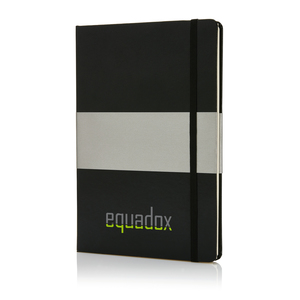 Formát A5, elastická gumička, křídový papír na předním a zadním přebalu, oblé rohy, vnitřní stránky v krémové barvě s černými linkami, 160 listů s gramáží 80 g, černá záložka.