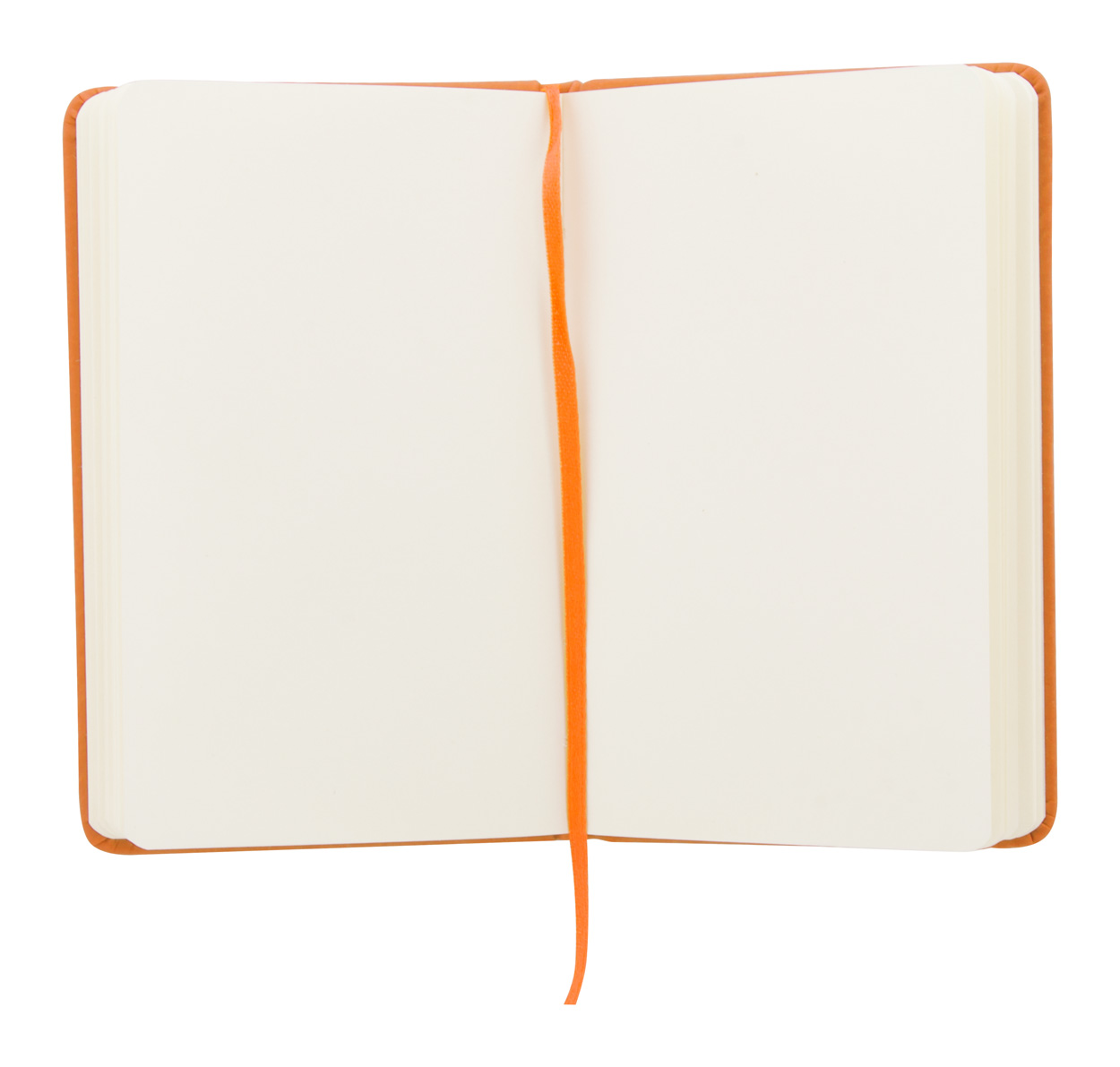 Poznámkový blok se 100 čistými listy, záložkou a gumičkou.