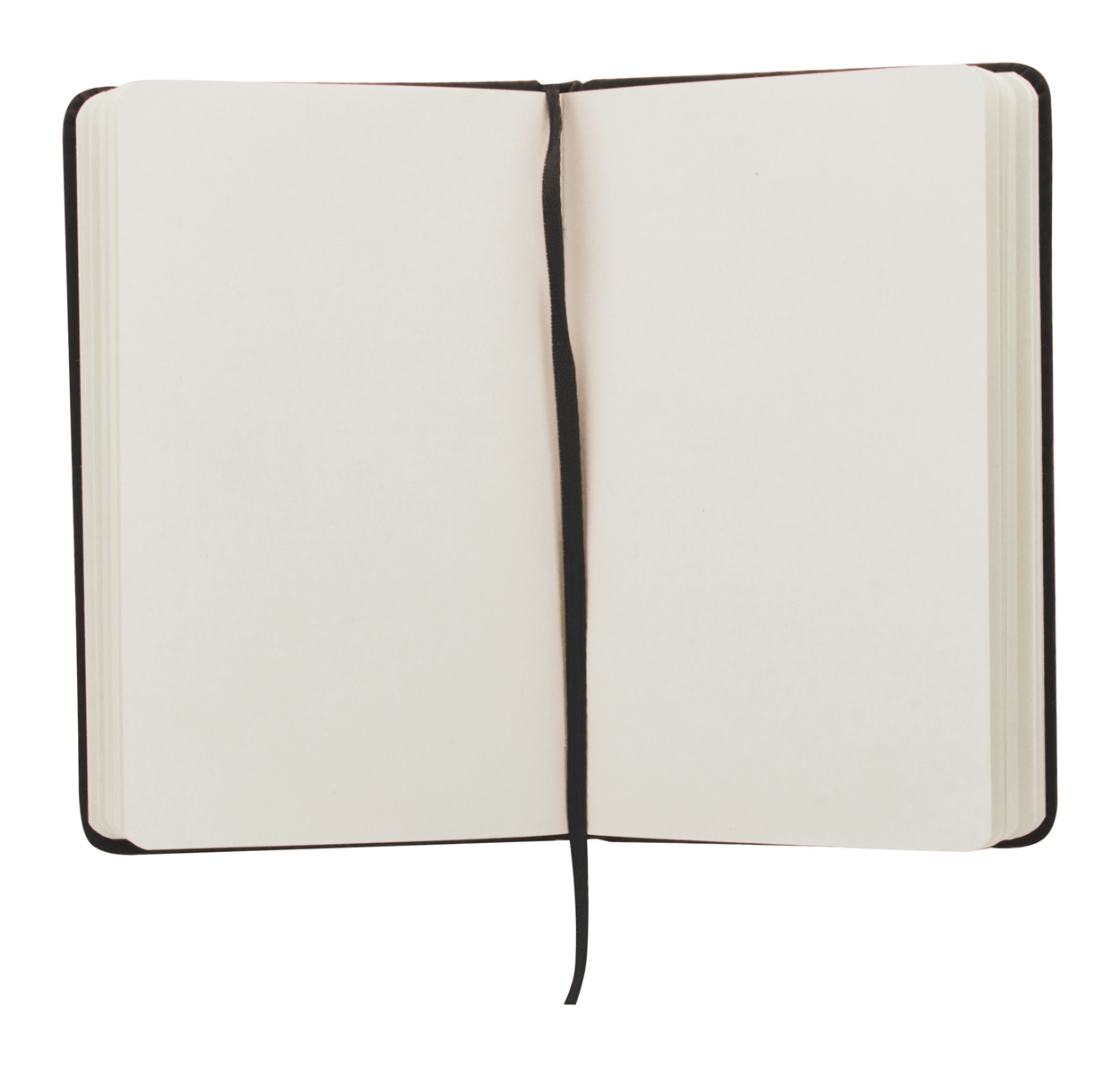 Poznámkový blok se 100 čistými listy, záložkou a gumičkou.