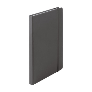 Poznámkový blok se 100 listy, záložkou a gumičkou.
