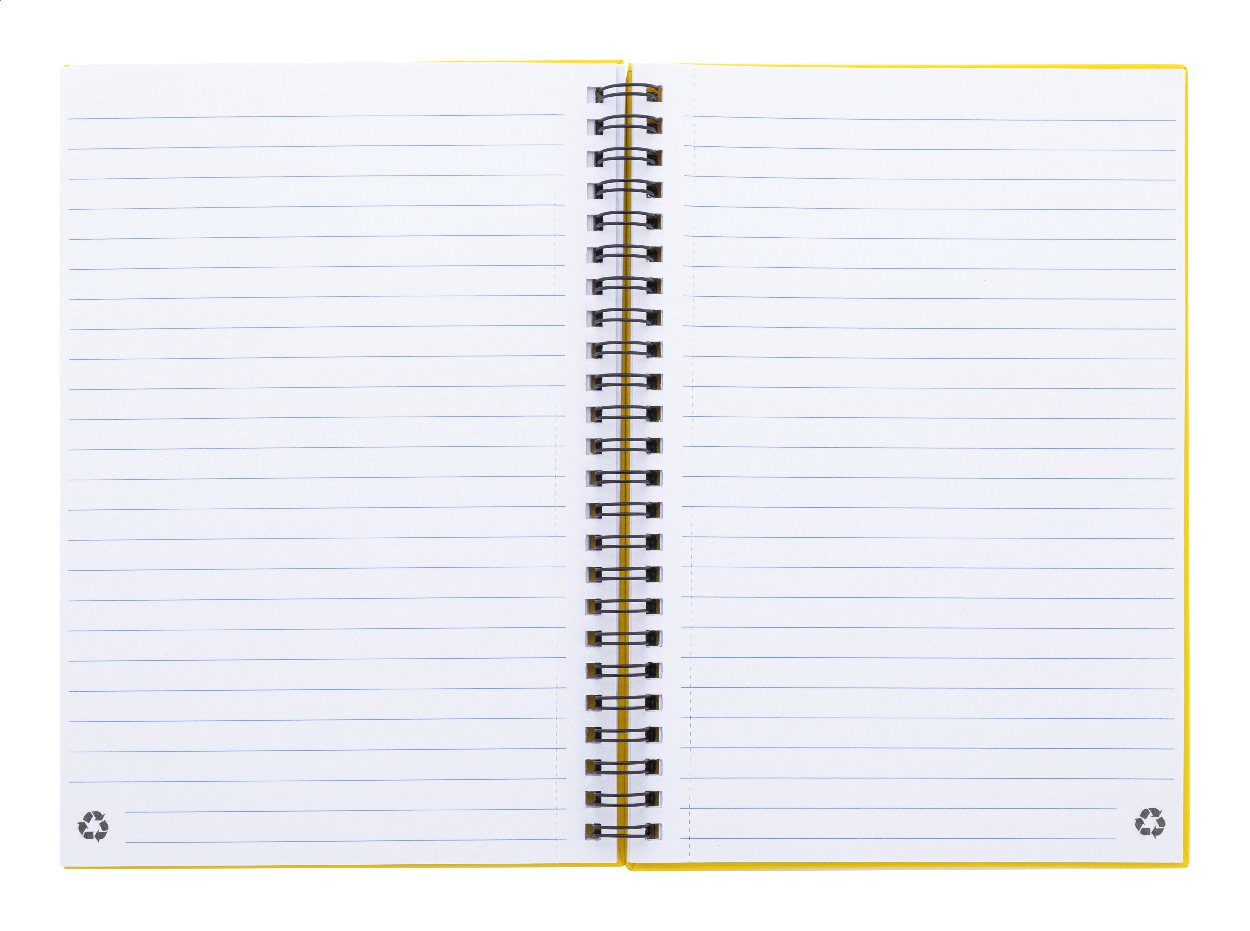 Spirálový blok A5 s 80 linkovanými listy z recyklovaného papíru.