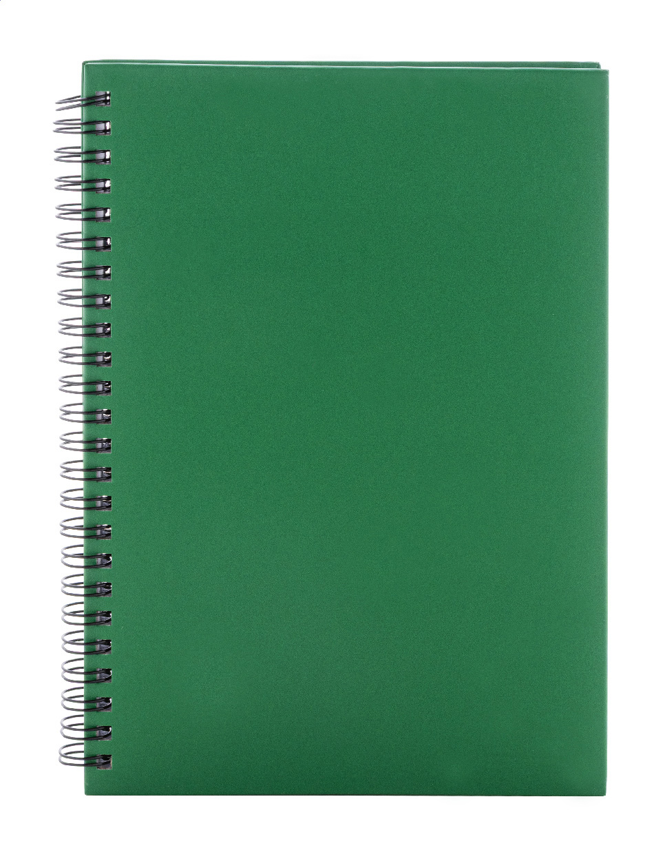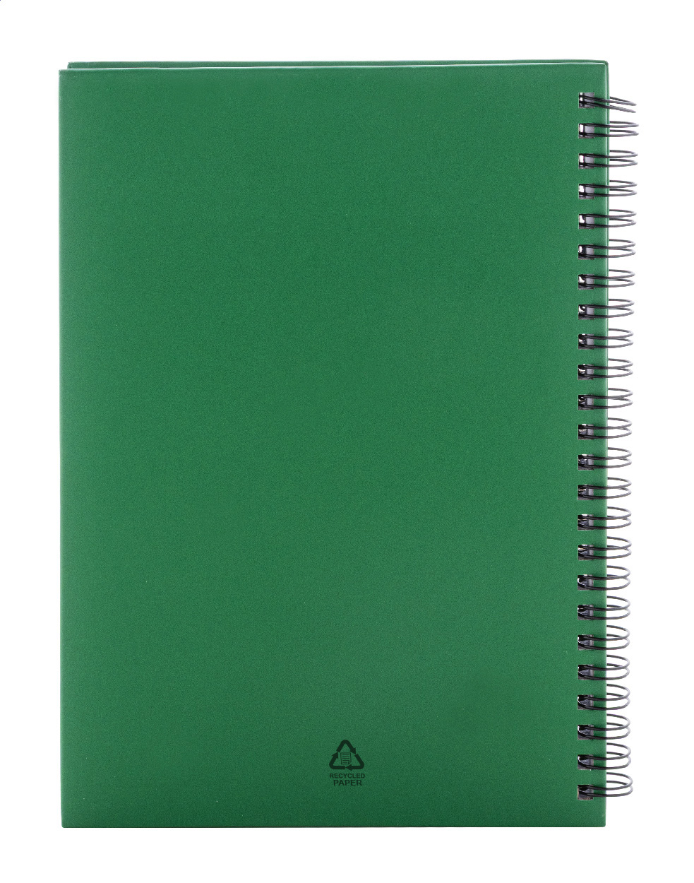 Spirálový blok A5 s 80 linkovanými listy z recyklovaného papíru.