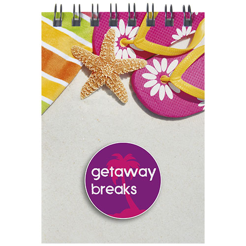 Spirálový poznámkový blok Desk-Mate® A7 Tento poznámkový blok obsahuje černý nebo bílý drát, lesklé desky (250g/m2) a 50 listů (80g/m2) čistého papíru. Dekorace je možná na obálce a na každém listu.