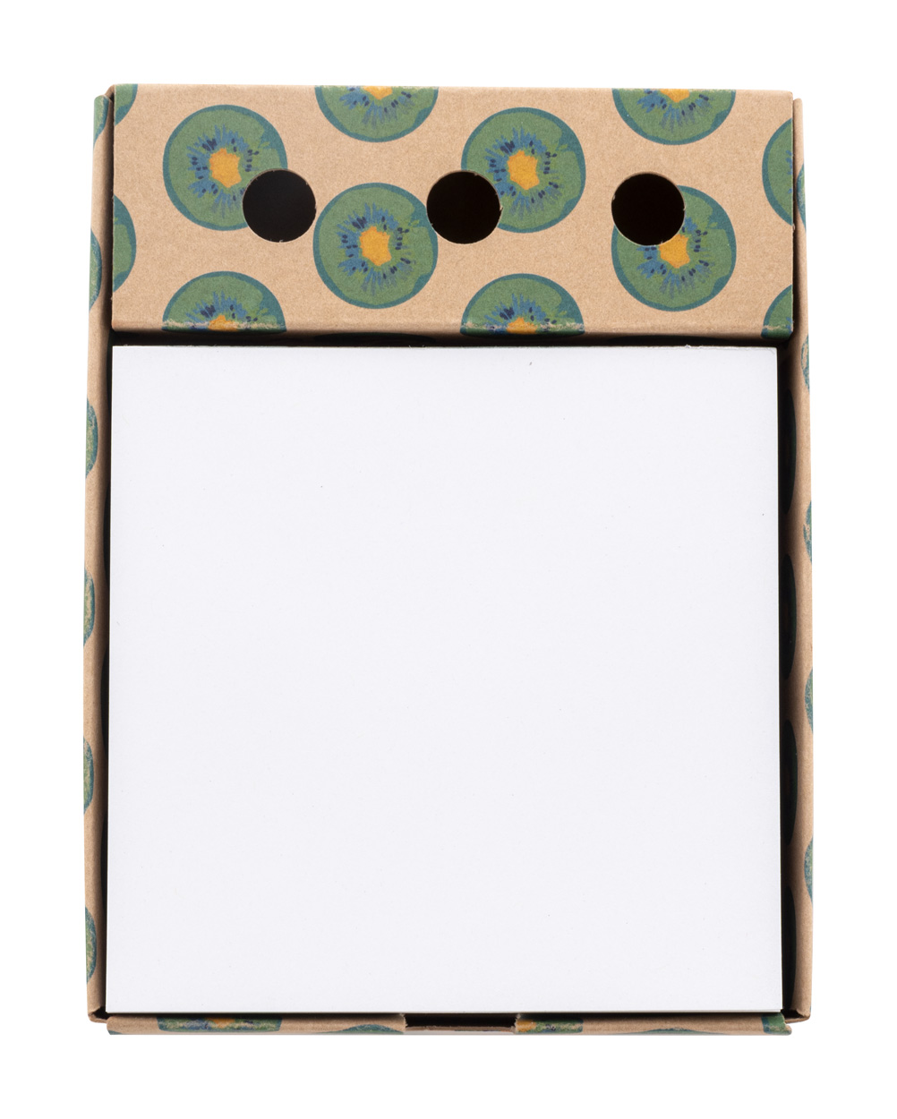 Na zakázku vyrobené kraftové pouzdro na pera a zásobník na poznámky s 300 listy poznámkového bloku z recyklovaného papíru (90 × 90 mm). Cena zahrnuje plnobarevný potisk držáku. MOQ: 100 ks.