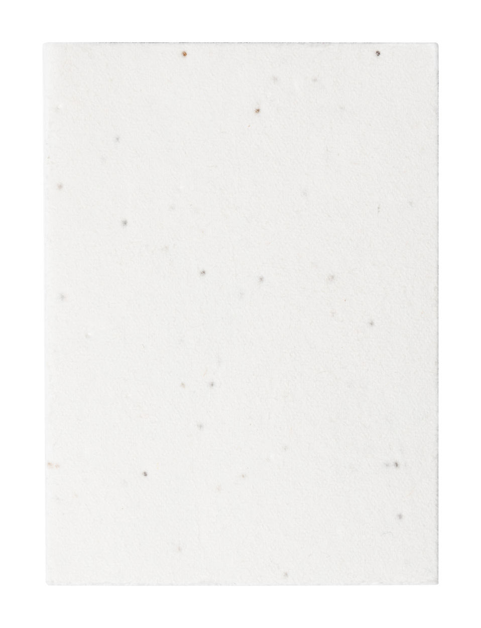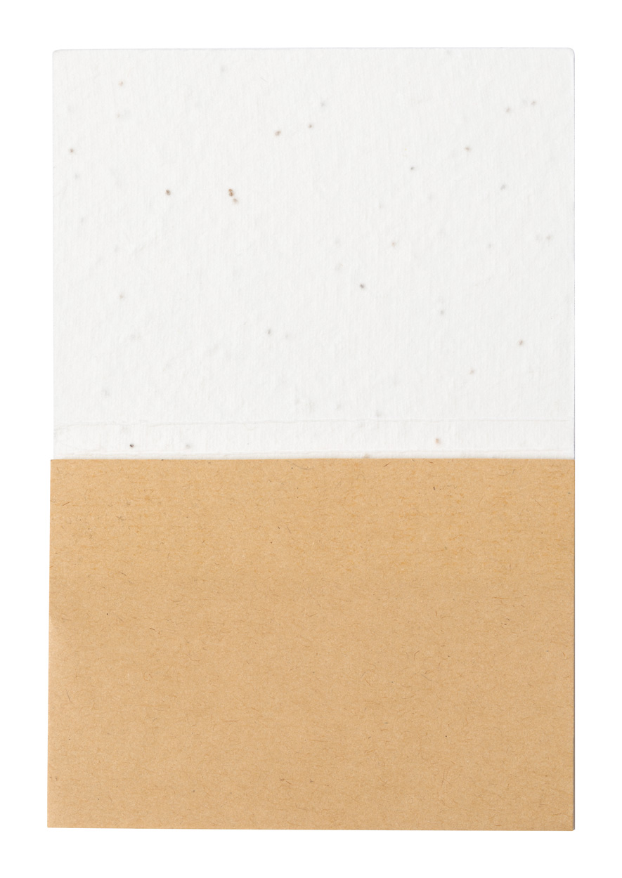 Poznámkový blok z recyklovaného kraftového papíru potažený papírem se semínky s 50 samolepícími lístky. Obal papíru se semínky obsahuje semena petúnie v různých barvách, která lze zasadit oddělením obalu od poznámkového bloku.