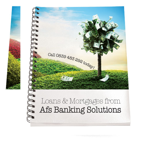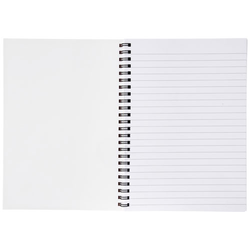 Spirálový poznámkový blok Desk-Mate® A4 Obsahuje 50 čistých listů (80 g/m2) papíru a (450 g/m2) obálku. Obálka je odolná proti roztržení a vodě. Bílý drát. Dekorace je možná na obálce a na každém listu.