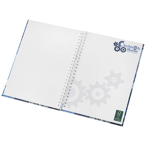 Obsahuje 80 čistých listů (80 g/m2) papíru a černý nebo bílý drát. K dispozici ve 3 velikostech: A4, A5 a A6. Plně barevná dekorace dostupná na obálce a na každém listu, na přední i zadní straně.