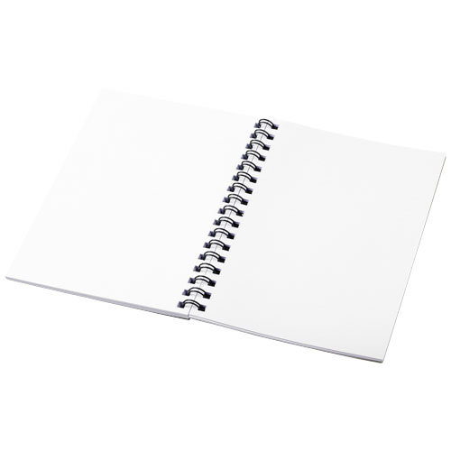 Spirálový poznámkový blok Desk-Mate® A6 Obsahuje listy čistého papíru 80 g/m2. Standardně se dodávají v balení po 50 listech, dostupné také po 100 listech. Poznámkový blok obsahuje průhlednou obálku z polypropylenu o tloušťce 500 mikronů (250 g/m2).