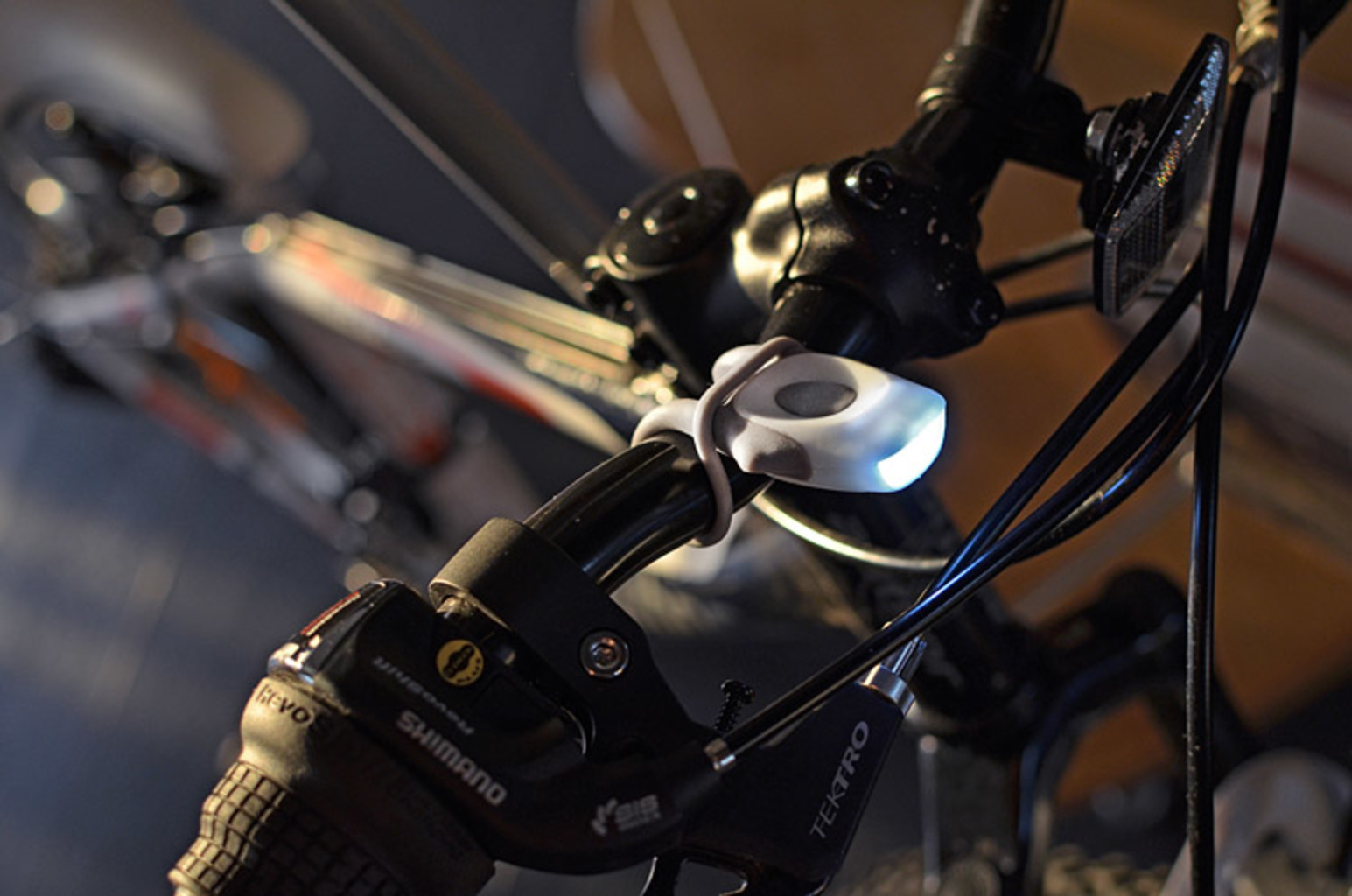 Praktické světlo na kolo s 2 LED a silikonovým držákem na kolo. Přední světlo s bílými diodami.