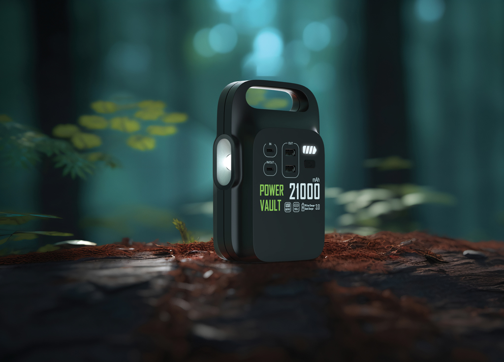 Nabíjecí stanice s kapacitou 21 000 mAh ideální pro nabíjení více zařízení kdekoliv na cestách nebo v domácnosti při nenadálých událostech. 3 výstupy (2x USB A, 1x USB C), integrovaná LED svítilna se 120 lumeny a dobou svícení až 40 hodin (vč. SOS režimu). Klika pro nouzové dobití baterie, v případě jejího plného vybití. Vyrobené z RCS recyklovaného ABS. RCS (Recycled Claim Standard) je globální standard, který umožňuje ověřit použití recyklovaného materiálu v produktu napříč celým dodavatelským řetězcem. Celkový podíl recyklátu dle váhy produktu: 20 %. Voděodolnost IPX 5. Vstup: USB C: 5V/2,4A, 9V/2A, 12V/1,5A. Výstup: USB C: 5V/2,4A, 9V/2A, 12V/1,5A; USB A: 5V/2,4A, 9V/2A, 12V/1,5A.