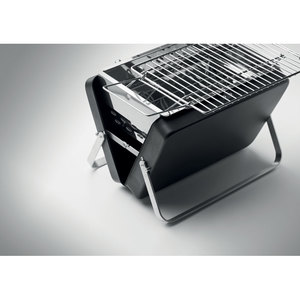Přenosný gril z nerezové oceli se stojanem ve spodní části.