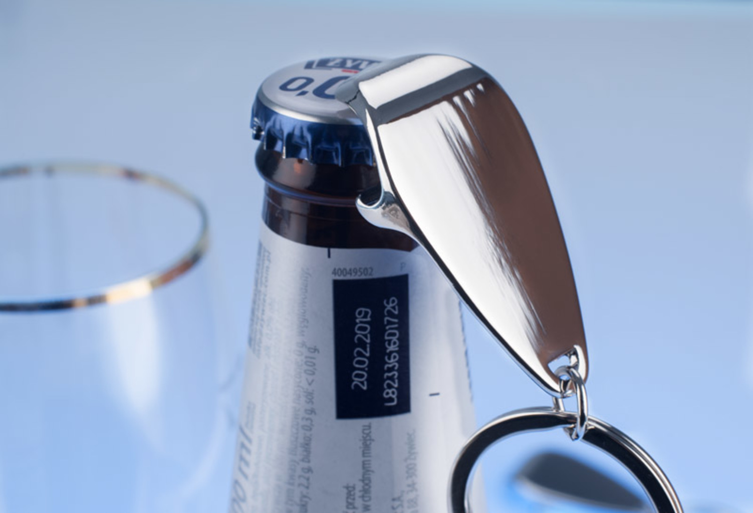 Chromovaný kovový otvírák na láhve - klíčenka.