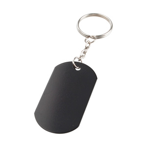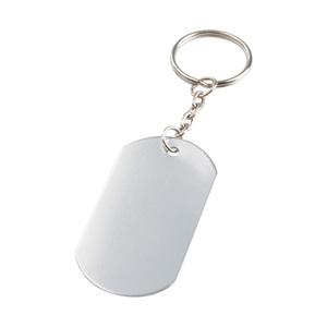 Hliníkový přívěšek na klíče s kovovým kroužkem.