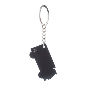 Přívěšek na klíče z recyklované nerezové oceli ve tvaru nákladního auta s pogumovaným povrchem. Se speciální vrstvou pro zrcadlové laserové gravírování.