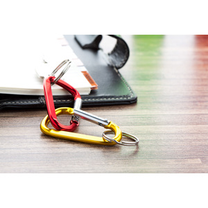 Kovový přívěšek na klíče s hliníkovou karabinou.