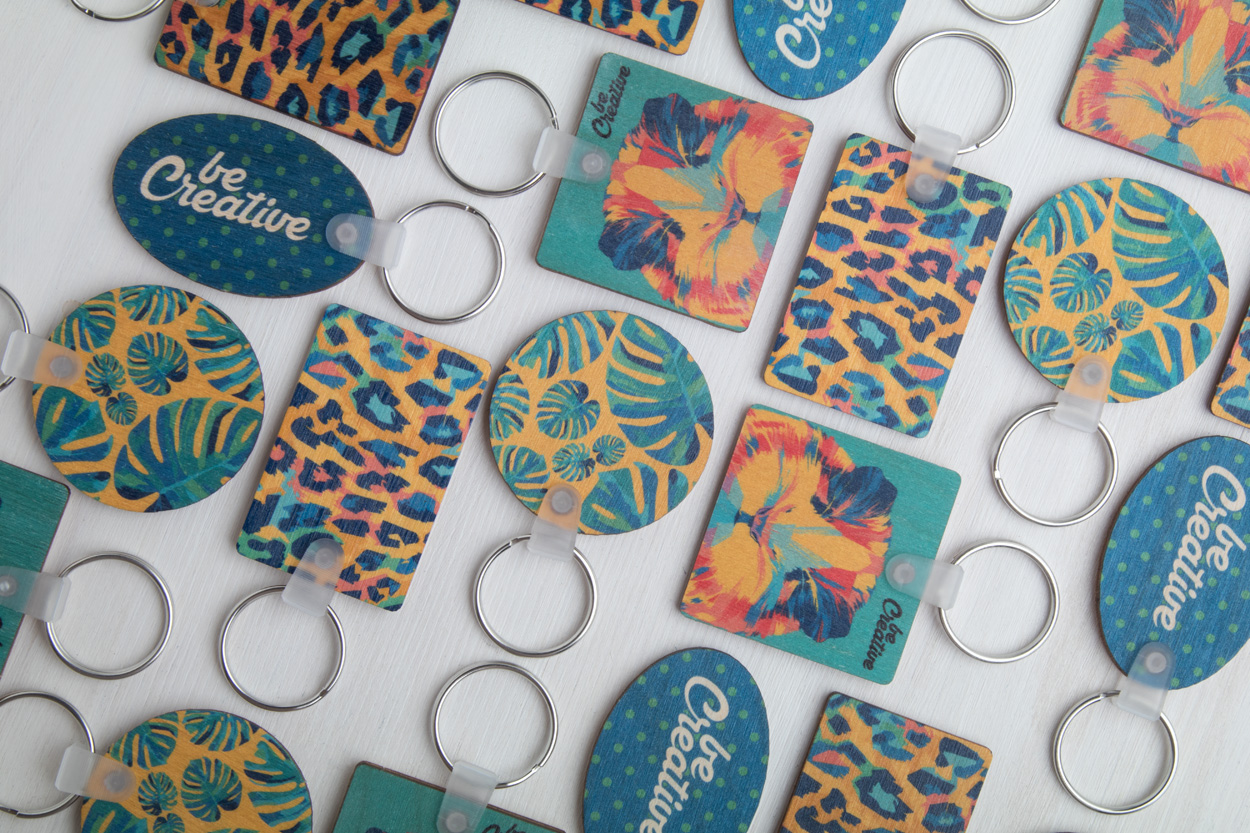 Obdélníková, dřevěný přívěšek na klíče z břízy s plnobarevným potiskem. Cena zahrnuje UV LED potisk na jedné straně, nezahrnuje tiskovou přípravu. Min. mn.: 200 ks.