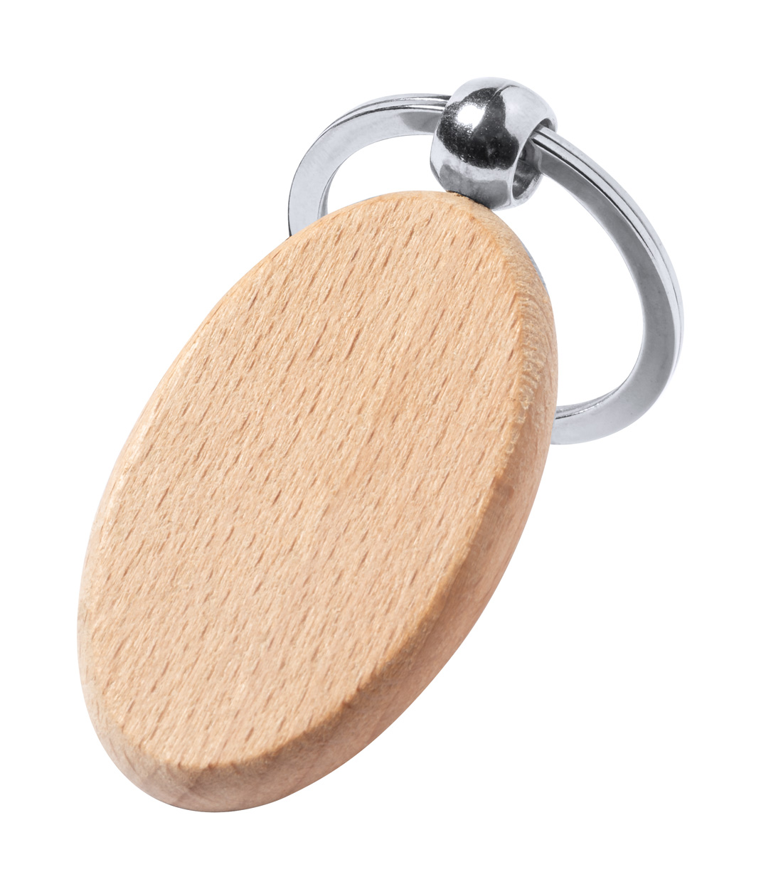 Přívěsek na klíče z přírodního bukového dřeva s kovovým kroužkem.