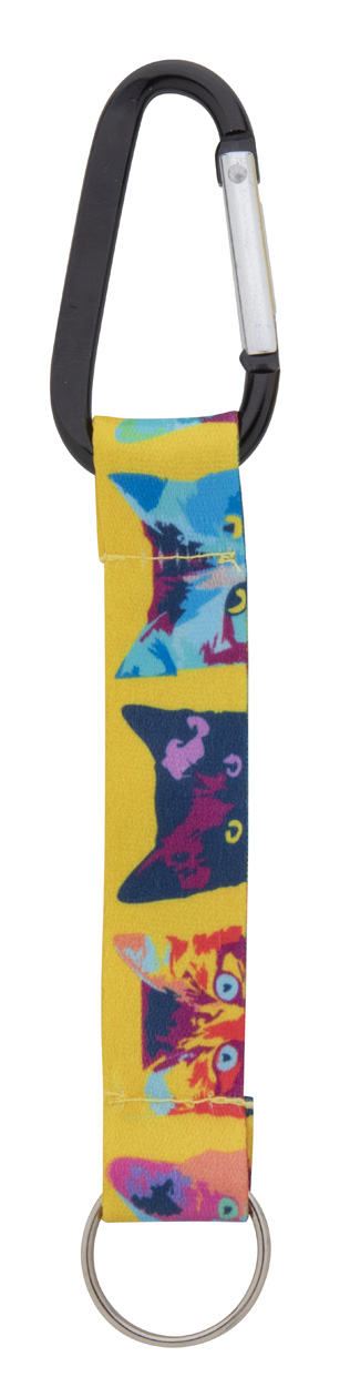 RPET přívěšek na klíče na zakázku s kovovou karabinkou, etiketou s označením RPET a kroužkem. Cena zahrnuje sublimační potisk na obou stranách, nezahrnuje tiskovou přípravu. Min. mn.: 100 ks.
