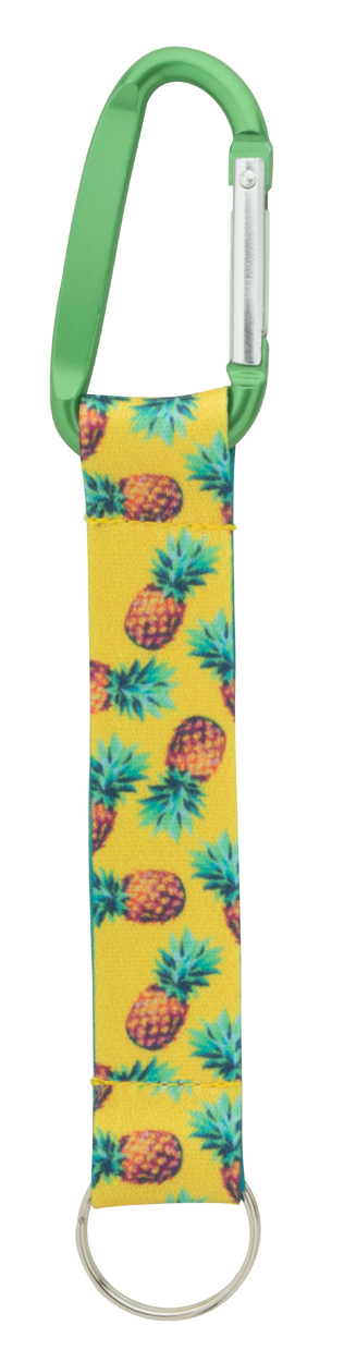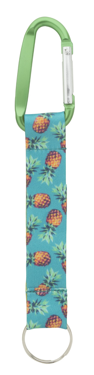RPET přívěšek na klíče na zakázku s kovovou karabinkou, etiketou s označením RPET a kroužkem. Cena zahrnuje sublimační potisk na obou stranách, nezahrnuje tiskovou přípravu. Min. mn.: 100 ks.