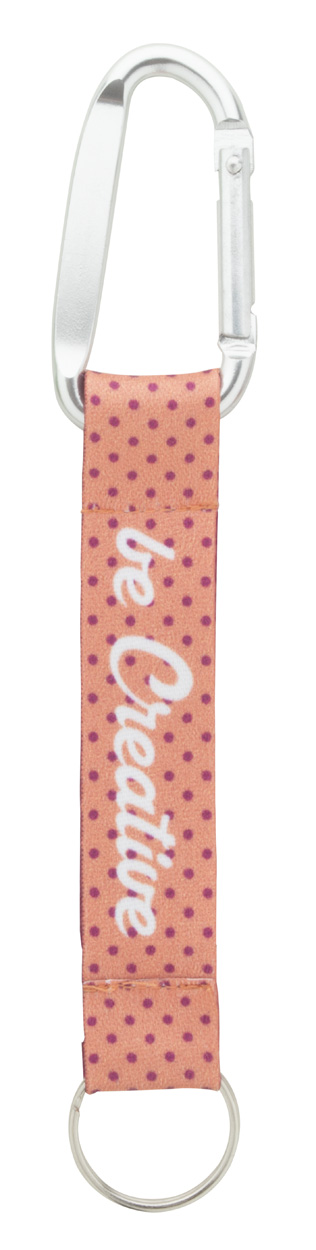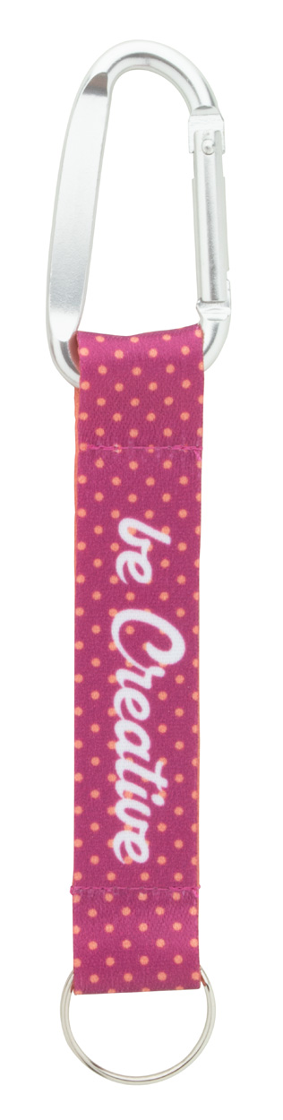 RPET přívěšek na klíče na zakázku s kovovou karabinkou, etiketou s označením RPET a kroužkem. Cena zahrnuje sublimační potisk na obou stranách, nezahrnuje tiskovou přípravu. Min. mn.: 100 ks.