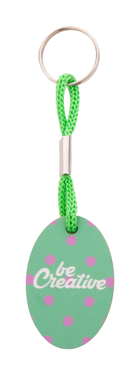 Oválný přívěsek na klíče z březové překližky s barevným polyesterovým páskem a plnobarevným potiskem. Cena je včetně UV LED tisku na jedné straně, nezahrnuje tiskovou přípravu. Min. mn.: 200 ks.