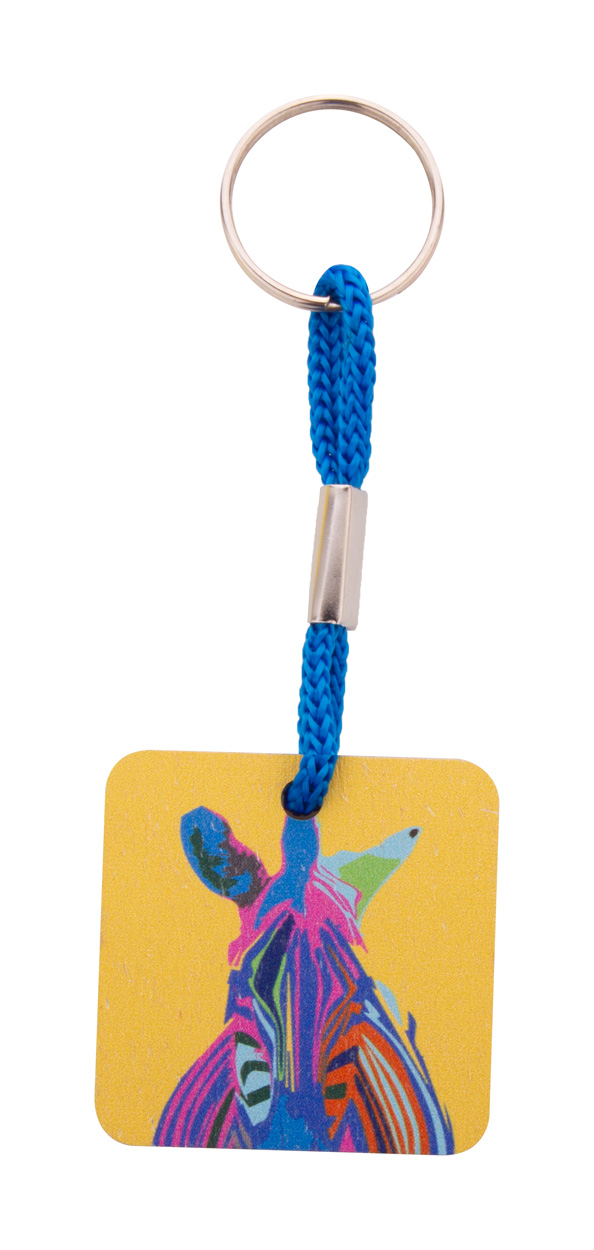 Čtvercový přívěsek na klíče z březové překližky s barevným polyesterovým páskem a plnobarevným potiskem. Cena je včetně UV LED tisku na jedné straně, nezahrnuje tiskovou přípravu. Min. mn.: 200 ks.