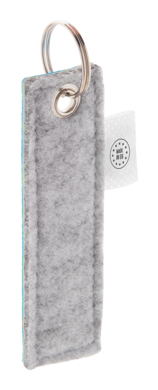 Na zakázku vyrobený přívěsek na klíče z RPET plsti s plnobarevně potištěnou přední stranou. S výrazným štítkem RPET. Cena včetně sublimačního tisku. MOQ: 100 ks.