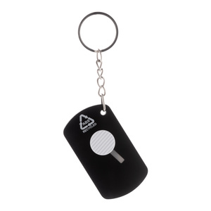 Nůž na papír z recyklovaného ABS plastu a nerezové oceli se samonavíjecí čepelí a kovovým kroužkem na klíče.