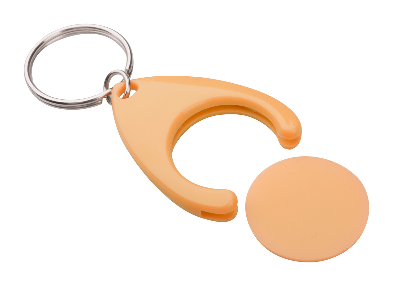 Plastový přívěšek na klíče s plastovým žetonem do nákupních vozíků.