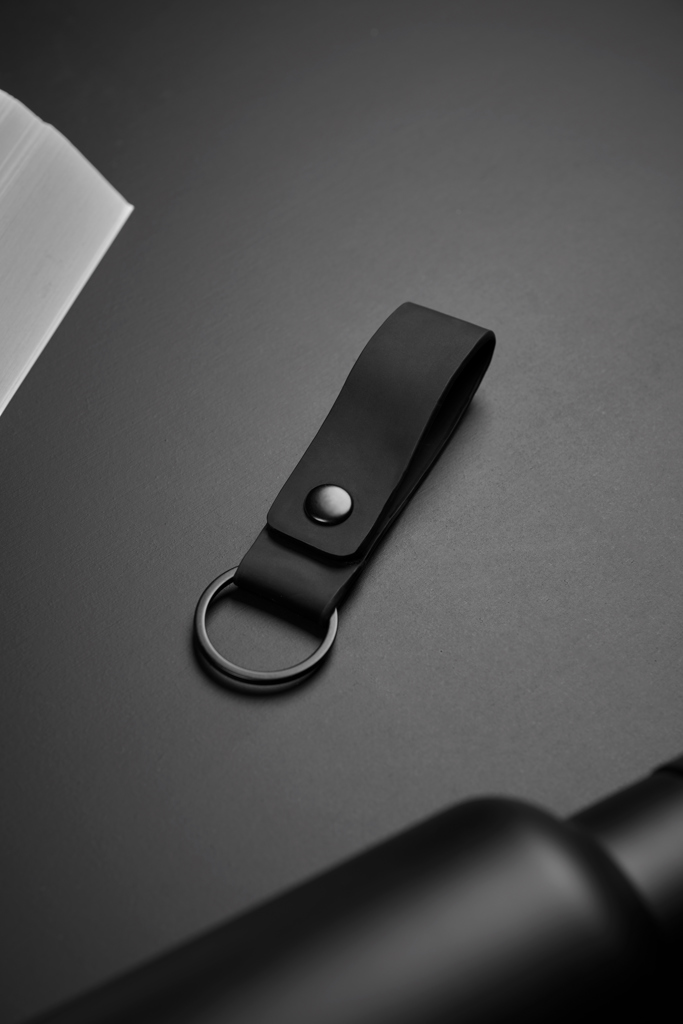 Přívěsek na klíče s poutkem z pružné veganské/nubukové PU kůže. Náš přívěsek na klíče je zajištěn kovovým nýtem, který mu dodává elegantní vzhled a zároveň zajišťuje, aby se klíče neztratily v tašce.